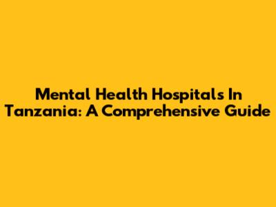 Mental Health Hospitals In Tanzania: A Comprehensive Guide