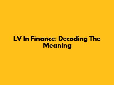 LV In Finance: Decoding The Meaning