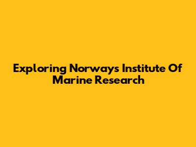 Exploring Norway's Institute Of Marine Research