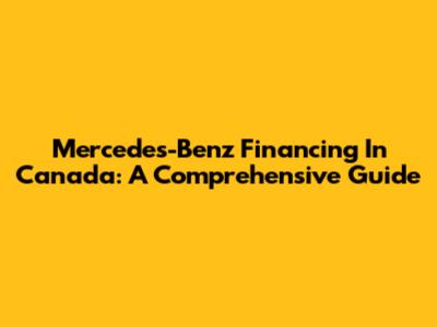 Mercedes-Benz Financing In Canada: A Comprehensive Guide