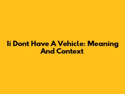 Ii Don't Have A Vehicle: Meaning And Context