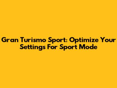 Gran Turismo Sport: Optimize Your Settings For Sport Mode