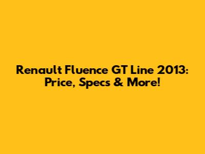 Renault Fluence GT Line 2013: Price, Specs & More!