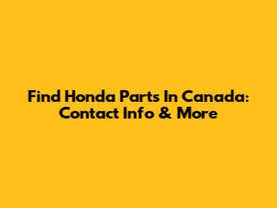 Find Honda Parts In Canada: Contact Info & More