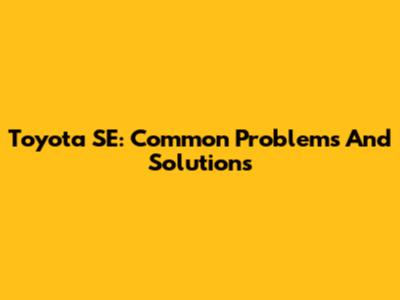Toyota SE: Common Problems And Solutions
