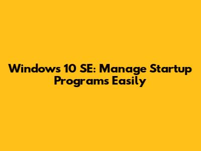 Windows 10 SE: Manage Startup Programs Easily