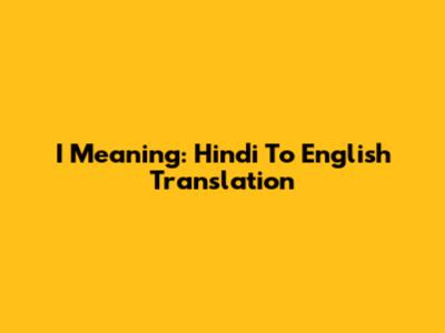 I Meaning: Hindi To English Translation