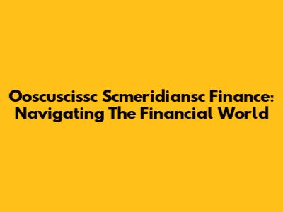 Ooscuscissc Scmeridiansc Finance: Navigating The Financial World