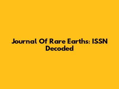 Journal Of Rare Earths: ISSN Decoded