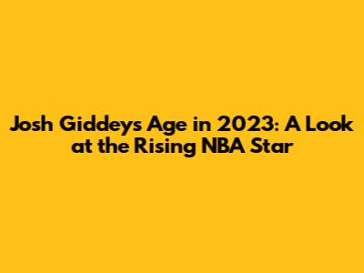 Alright, guys, the burning question: how old is Josh Giddey in 2023? Born on October 10, 2002, Josh Giddey turned 21 years old in 2023. Can you believe it? He's still so young, yet he's already making waves in the NBA. This makes him one of the youngest players in the league, showcasing his incredible talent and potential. It's fascinating to see how far he has come and the impact he has already made at such a young age. His youth brings an energy and excitement to the game that is infectious. Seeing him play inspires hope for the future of the sport, and we are all thrilled to watch his career unfold. It’s amazing to see the dedication, hard work, and passion that Josh has put into the game, making him a role model for aspiring young athletes worldwide. Knowing his age helps frame our understanding of his career trajectory, emphasizing that he is still early in his development with plenty of room to grow and improve. With each passing season, we can expect to see him evolve even further, adding new dimensions to his game and solidifying his place among the league's elite players. The anticipation surrounding his future is palpable, and fans eagerly await each game to witness his continued growth and impact on the court. It's a testament to his talent and the opportunities that lie ahead, making him a player to watch for years to come. Josh’s youth, combined with his skills and dedication, makes him a player to watch closely as he climbs the ranks in the NBA. This young age also highlights the importance of proper mentorship, training, and the support system around him, contributing to his success and future achievements in the sport.