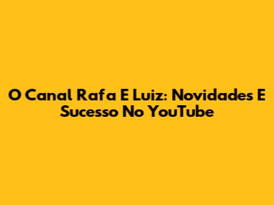 O Canal Rafa E Luiz: Novidades E Sucesso No YouTube