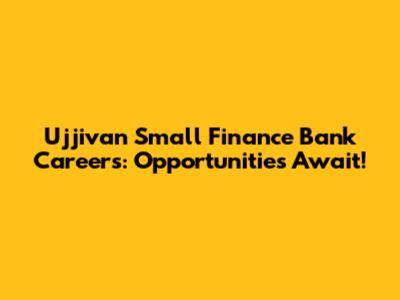 Ujjivan Small Finance Bank Careers: Opportunities Await!