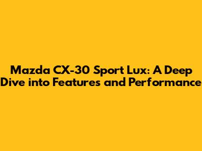 Hey guys! Let's dive deep into the Mazda CX-30 Sport Lux, a vehicle that perfectly blends sporty aesthetics with luxurious comfort. This subcompact crossover has been turning heads with its sleek design, refined interior, and engaging driving dynamics. If you're in the market for a car that offers both style and substance, the CX-30 Sport Lux might just be the perfect fit. So, let's break down what makes this car so special and why it stands out in a crowded segment.