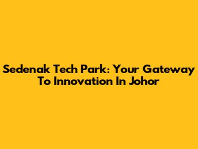 Sedenak Tech Park: Your Gateway To Innovation In Johor