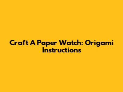 Craft A Paper Watch: Origami Instructions