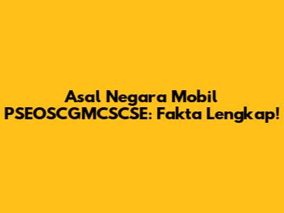 Asal Negara Mobil PSEOSCGMCSCSE: Fakta Lengkap!