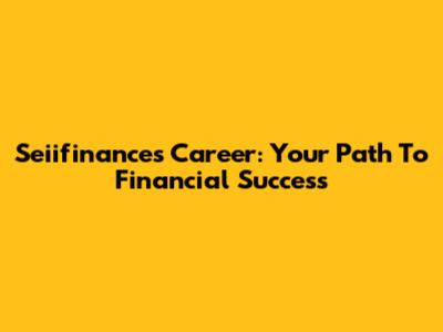 Seiifinances Career: Your Path To Financial Success