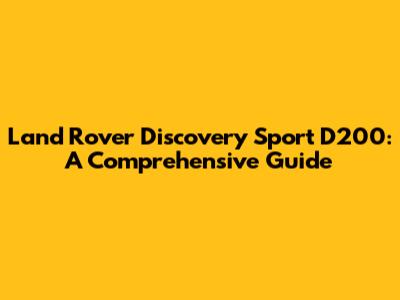 Land Rover Discovery Sport D200: A Comprehensive Guide