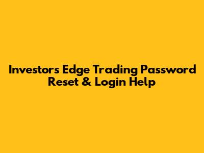 Investor's Edge Trading Password Reset & Login Help