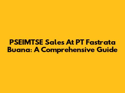 PSEIMTSE Sales At PT Fastrata Buana: A Comprehensive Guide
