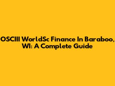 OSCIII WorldSc Finance In Baraboo, WI: A Complete Guide
