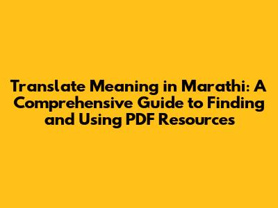 Finding Reliable Marathi Translation PDF Resources