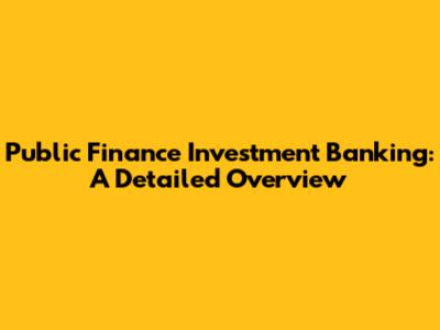 Public Finance Investment Banking: A Detailed Overview