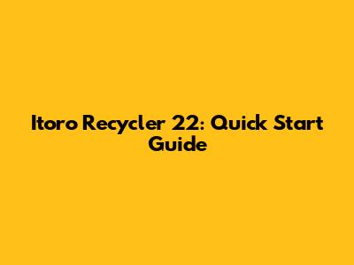 Itoro Recycler 22: Quick Start Guide